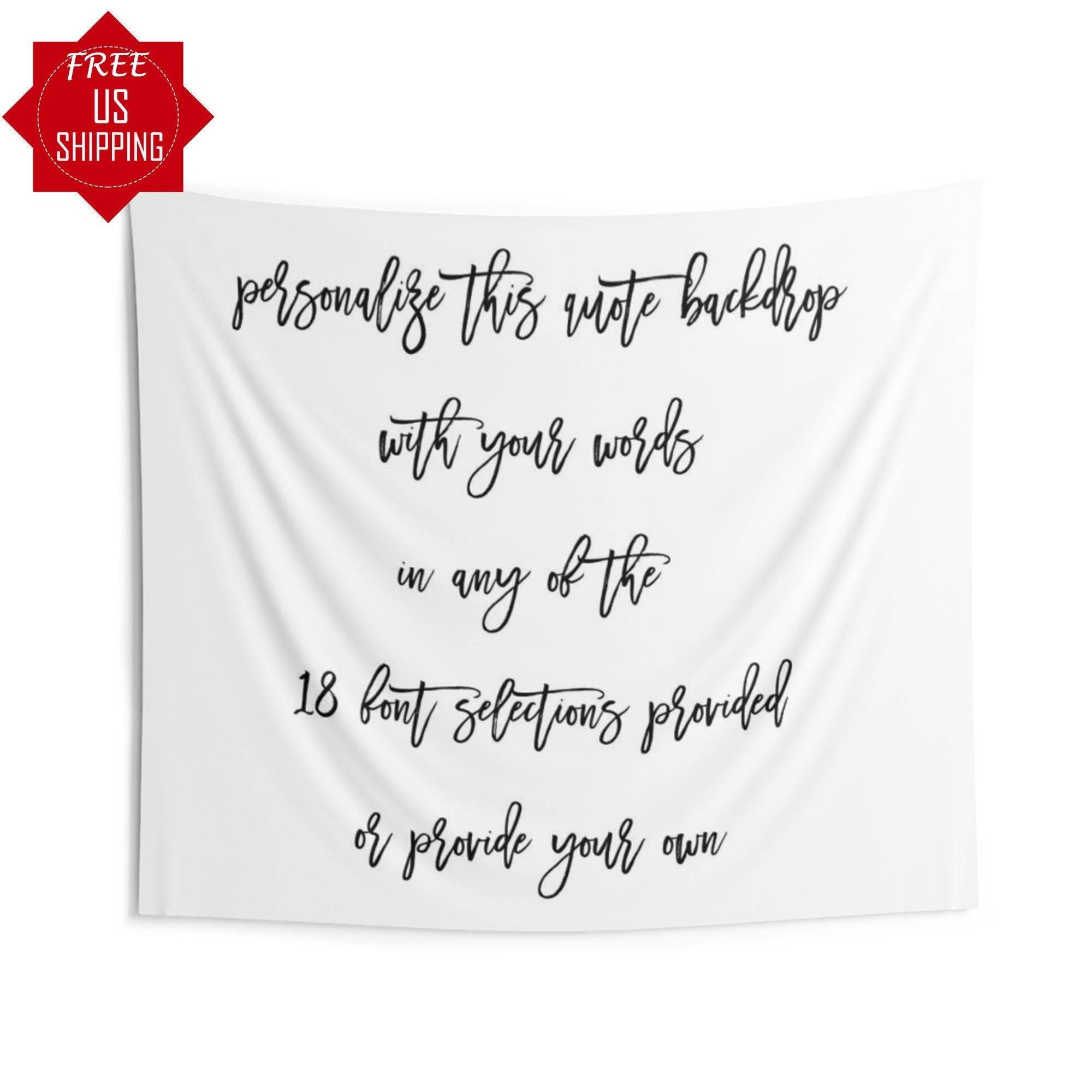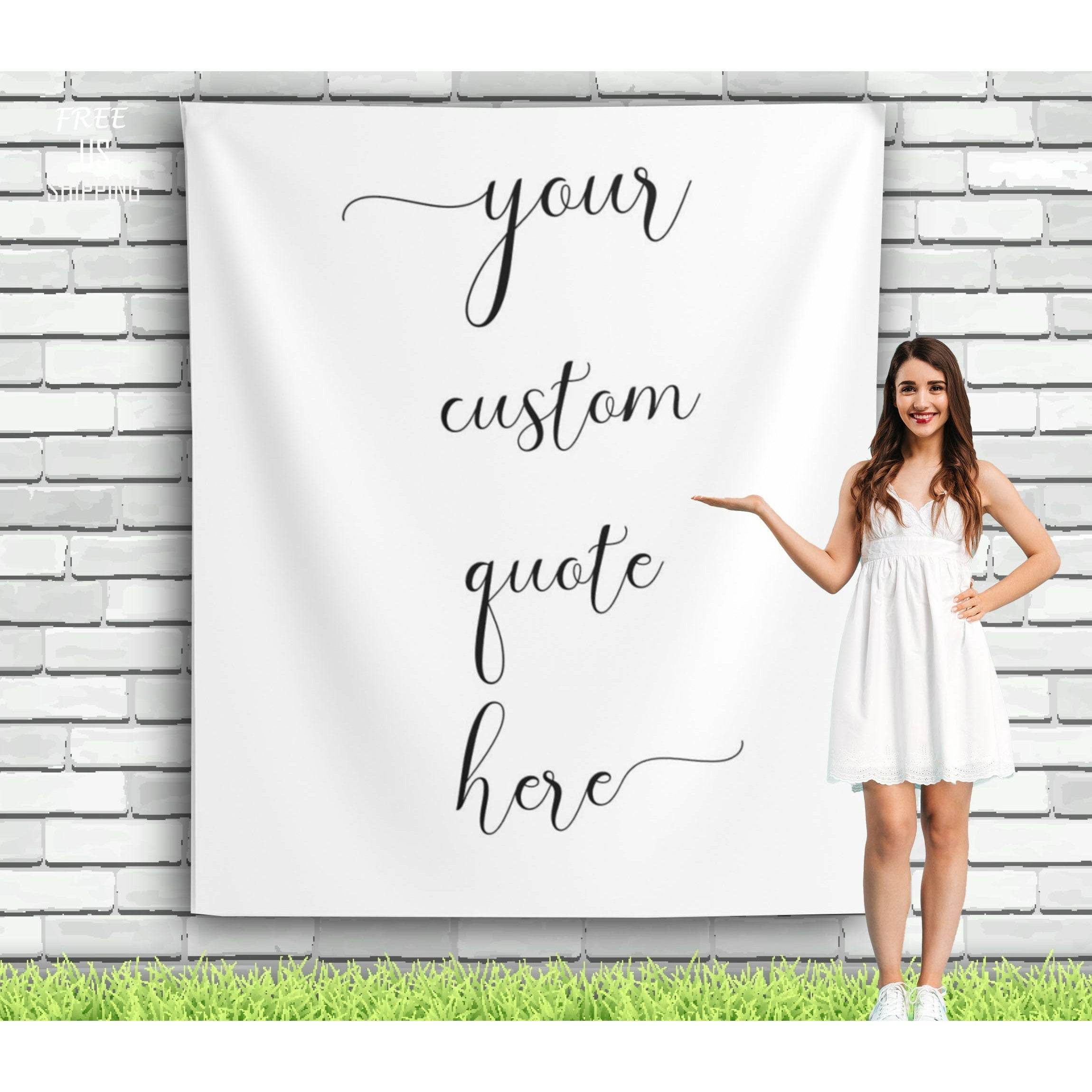 We love making custom backdrops for your special day. This custom backdrop is the perfect addition to your wedding decor. We can print any quote you want on our backdrops! Whether it's a wedding quote or a love quote. Just type your text in the personalization section choose your background...