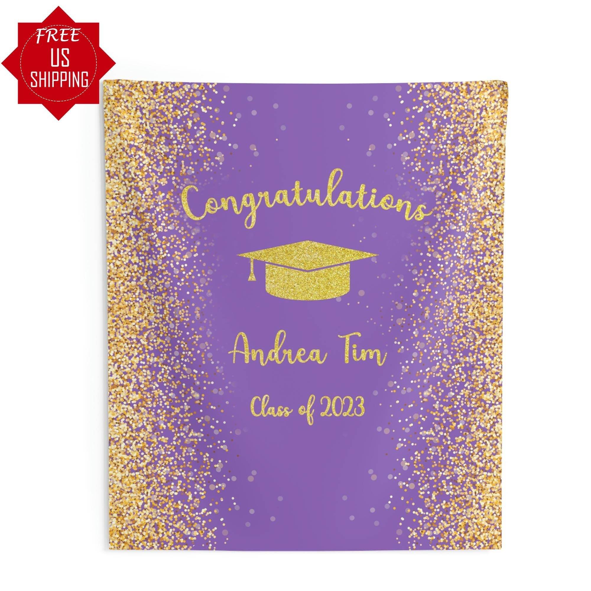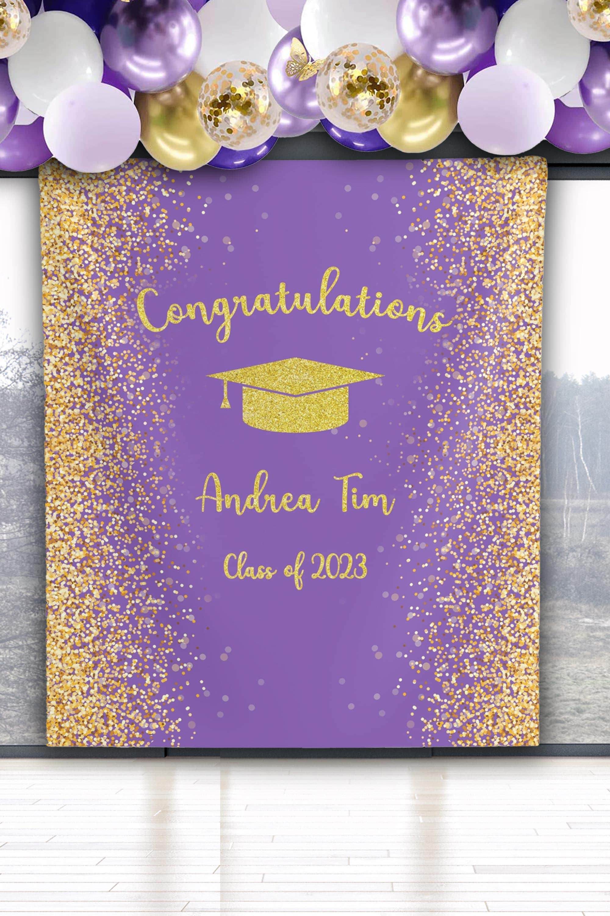 Purple Gold Graduation Backdrop, 2023 Prom Photo Booth, Gold Glitter Congrats Grad Banner, Grad Ceremony Background, College Grad Party