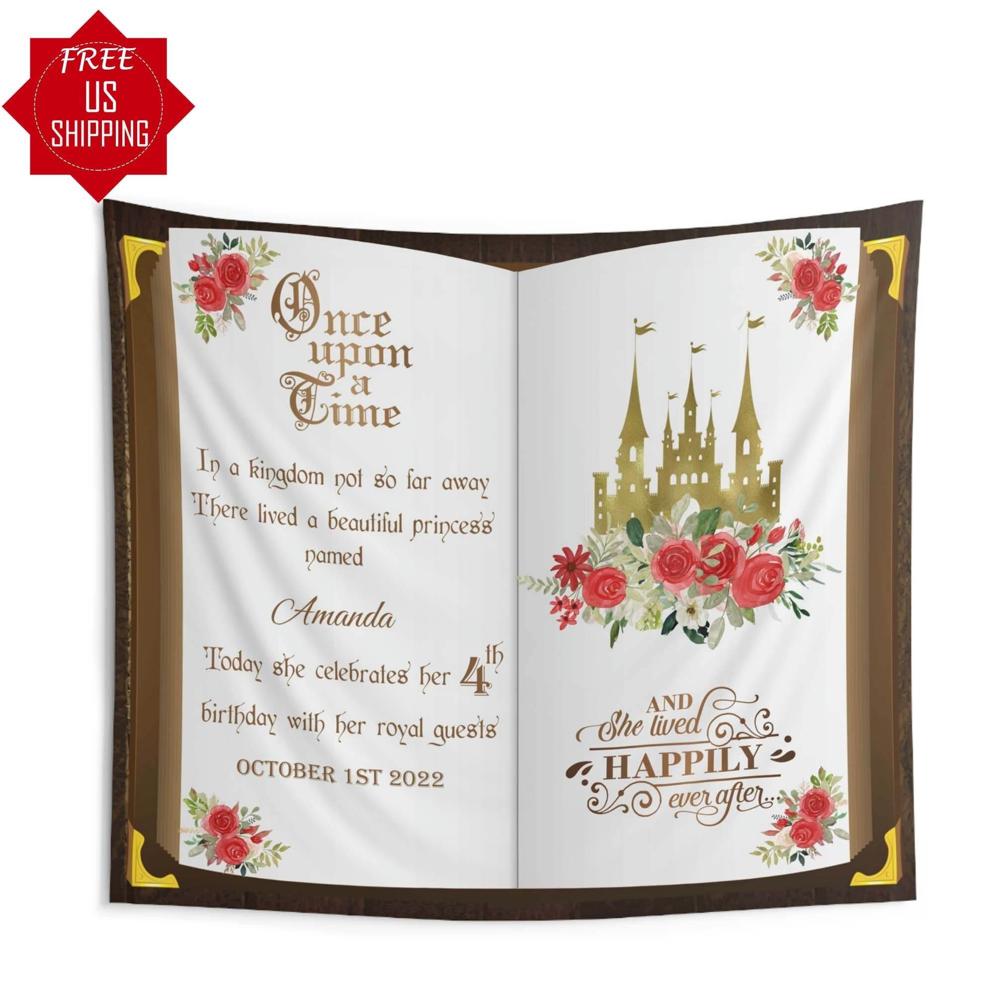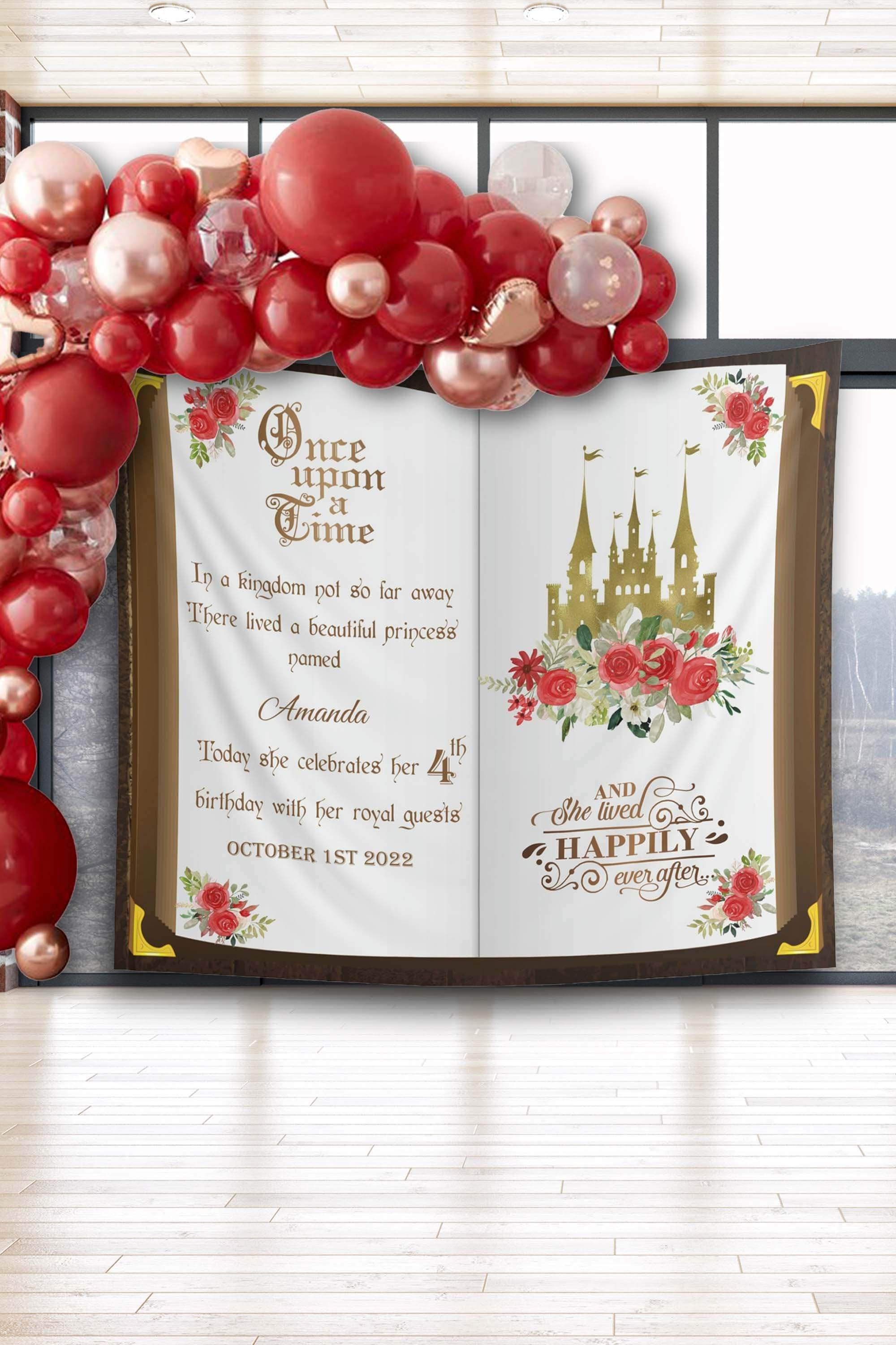 Red Roses Birthday Decor Once Upon a Time Birthday Backdrop Princess Party Banner Royal Castle Fairytale Background Derby Happy Birthday